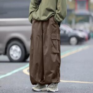 Flat Pocket Parachute Pants for Men Casual Baggy Cargo Pants Unisex Street Y2K Pants Drawstring Trouser$59.36 Select options This product has multiple variants. The options may be chosen on the product page